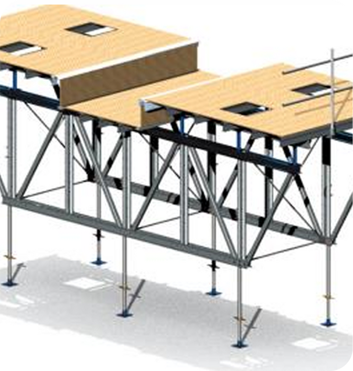 The system uses only three essential parts: a slab panel, a steel prop, and a truss. This streamlined design reduces complexity, minimizes the risk of error during assembly, and simplifies maintenance throughout the project lifecycle.